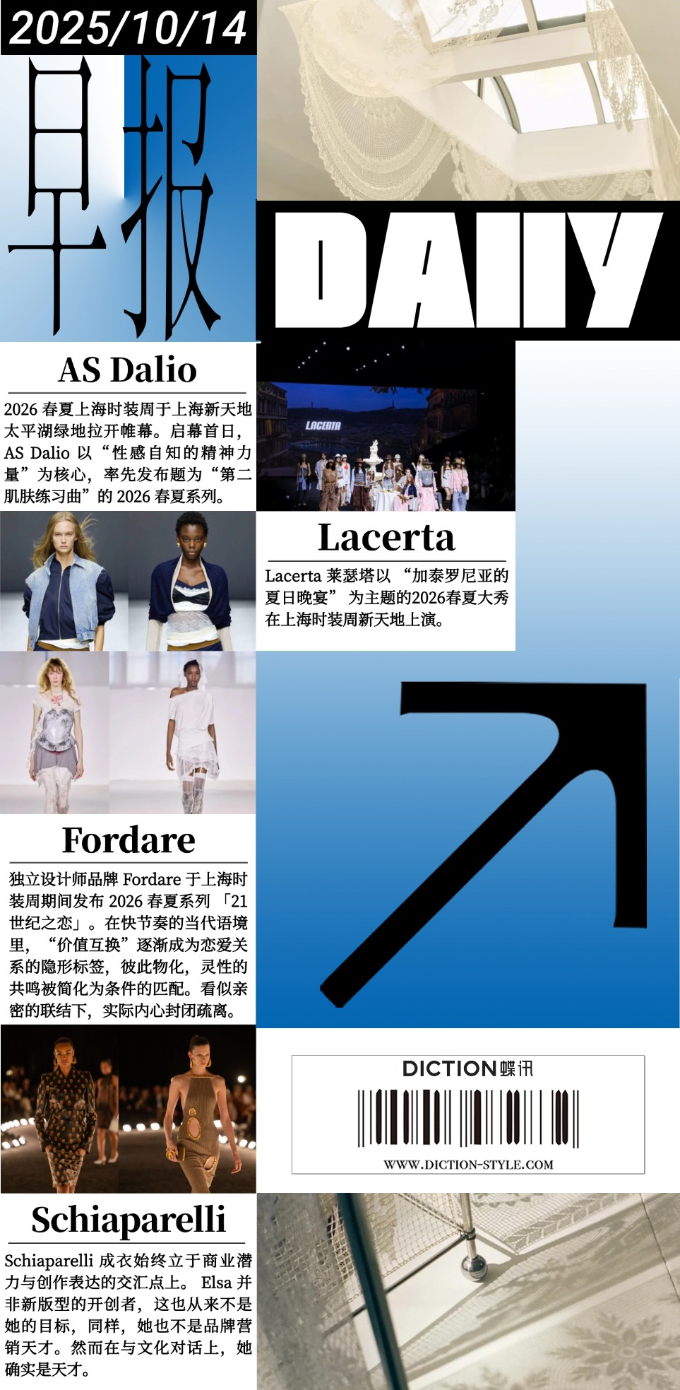 时尚资讯丨AS Dalio 2026春夏系列“第二肌肤练习曲”发布 ;Schiaparelli 2026春夏成衣系列:暗夜舞者