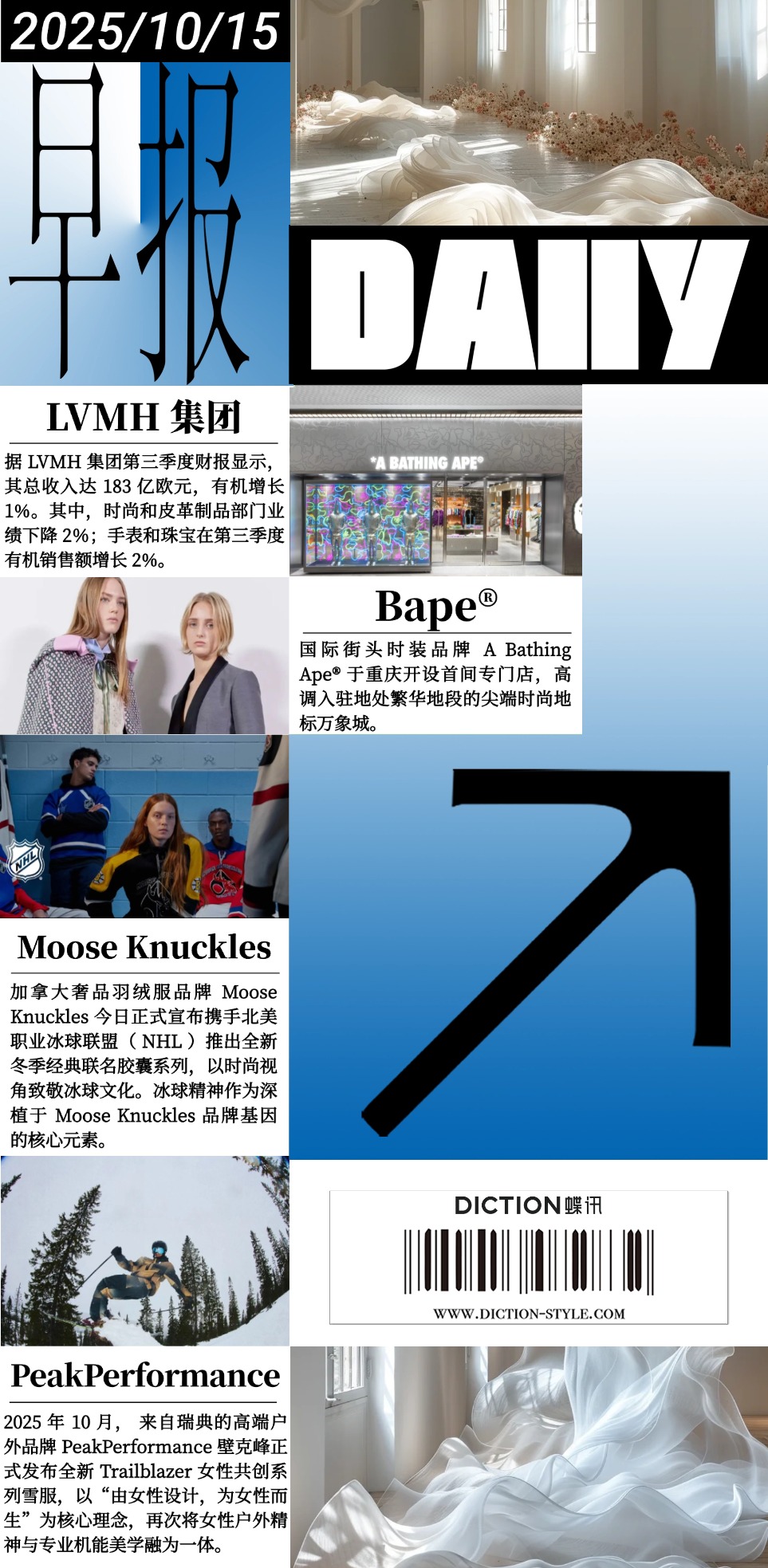 时尚资讯丨LVMH 集团第三季度有机收入增长 1% ;PeakPerformance壁克峰发布全新 Trailblazer女性共创系列雪服