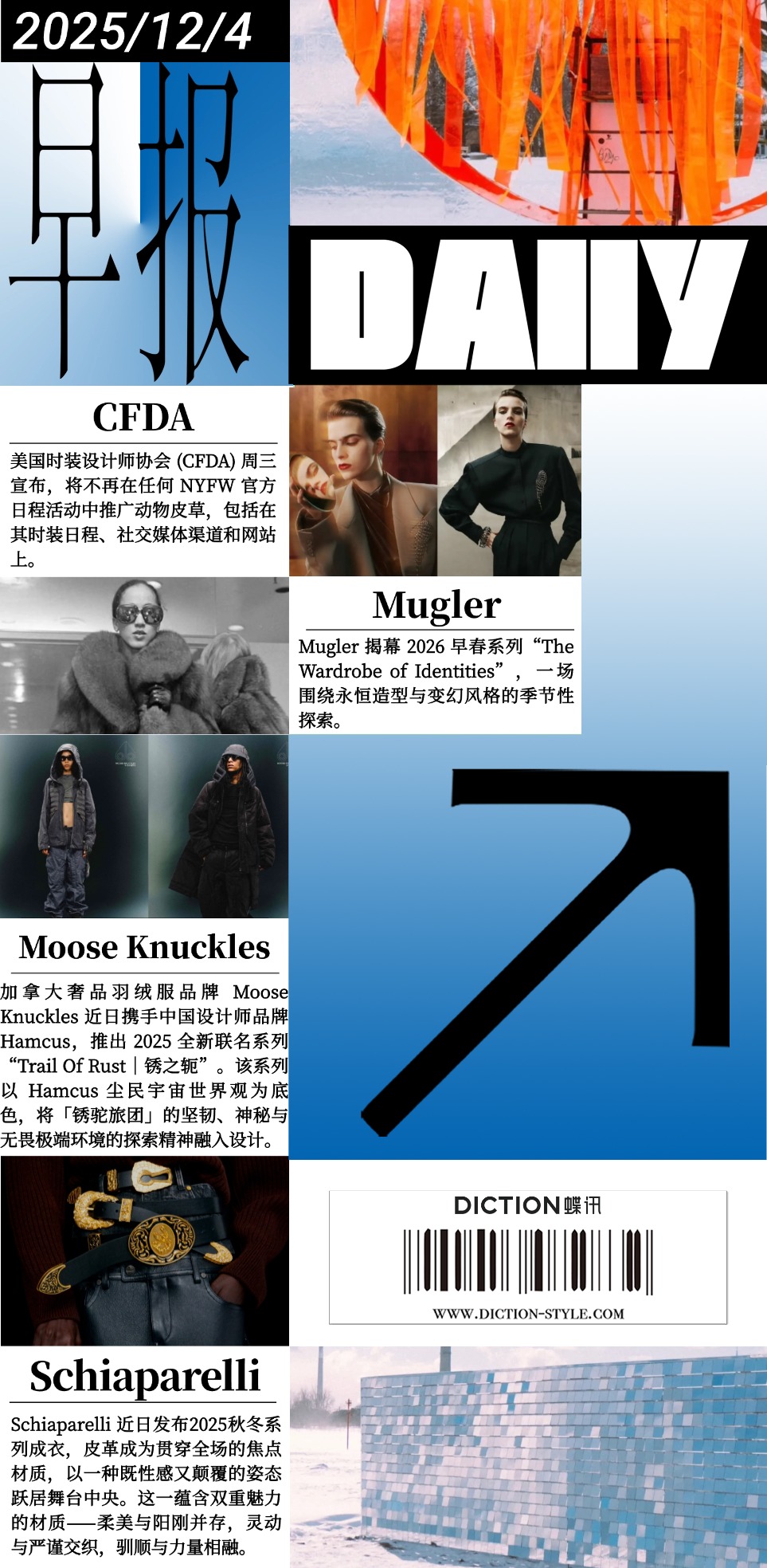时尚资讯丨美国时装设计师协会(CFDA)宣布纽约时装周禁止使用皮草 ; Moose Knuckles携手Hamcus 推出全新联名系列